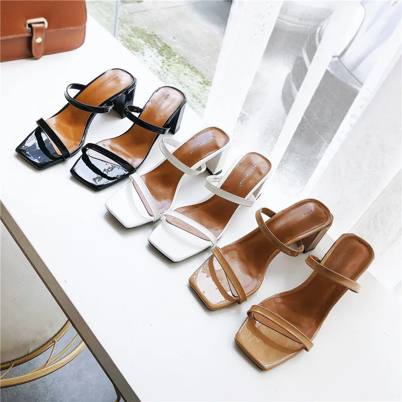 dropshipping Slip On Square Heel Women Slipper Summer Outdoor Trendy Comfortable Sandals Thin Strap