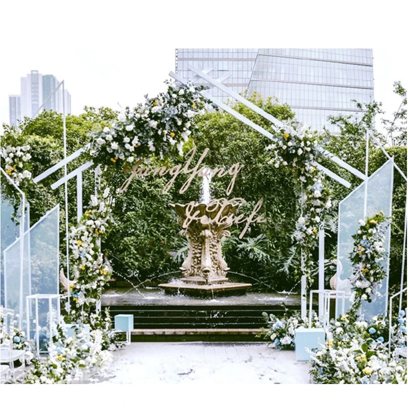 1set Wedding wrought iron arch flower door pentagon outdoor geometry wedding party backdrop flowers