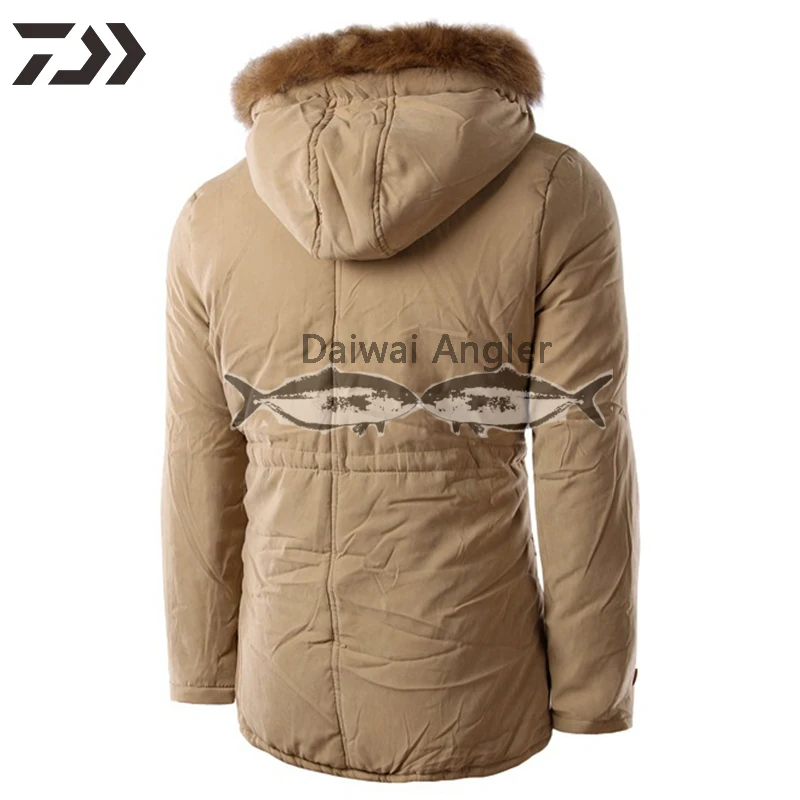 Daiwa Fishing Jacket Men Thick Cotton Thermal Long Sleeve Fish Clothes Solid Hooded Ice Fishing Clo